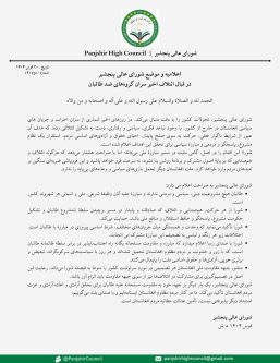 شورای عالی پنجشیر: مقاومت مسلحانه تنها راه مبارزه با گروه طالبان است