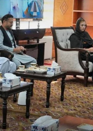 شهابالدین دلاور، رئیس عمومی هلال احمر گروه طالبان، با خانم نیوس، مسئول بخش روانی صلیب سرخ دنمارک، دیدار و درباره ...