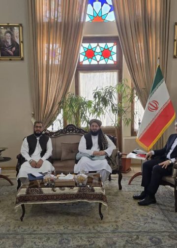 فضلمحمد حقانی، سفیر گروه طالبان در تهران، با علیاکبر نظری، مدیرکل جدید تشریفات وزارت امور خارجه جمهوری اسلامی ایران، دیدار ...