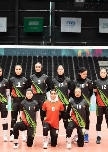 شیلا «احمدی» تیم والیبال بانوان خراسانافغانستان در دومین دیدار شان در رقابتهای همبستگی کشورهای اسلامی ۲۰۲۵، همراه با تیم ...