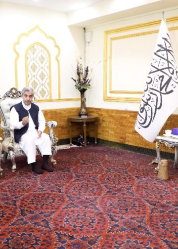عبدالغنی برادر، معاون اقتصادی نخستوزیر گروه طالبان، در دفتر کارش با نمیک حیدروف، رئیس مؤسسه «اکبر» دیدار و در مورد ...
