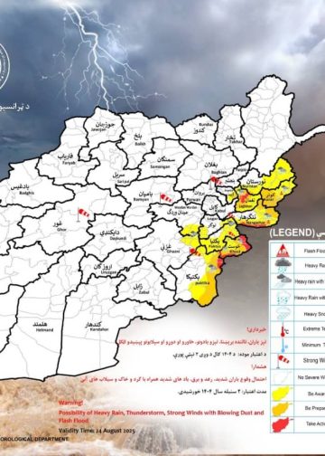 ریاست هواشناسی وزارت ترانسپورت و هوانوردی گروه طالبان اعلام کرده است که روزیکشنبه ( ۲ سنبله/شهریور) احتمال بارندگی شدید همراه ...