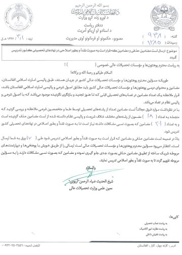 گروه طالبان، اعلام کرده است که بیش از ۲۰۰ مضمون دانشگاهی باید یا از نظام آموزش عالی حذف شوند و ...