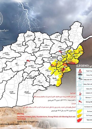 ریاست هواشناسی وزارت ترانسپورت و هوانوردی گروه طالبان اعلام کرده است که احتمال بارندگیهای شدید همراه با رعد و برق ...