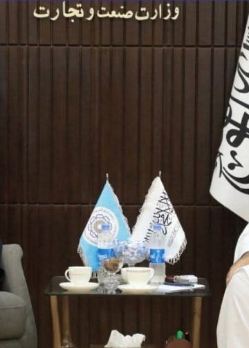 احمد دیلر، رئیس اتحادیه صادرکنندگان قالین استانبول، با نورالدین عزیزی، وزیر وزارت صنعت و تجارت گروه طالبان، دیدار و گفتوگو ...