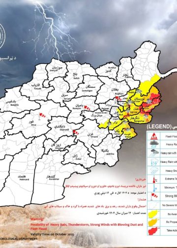ریاست هواشناسی وزارت ترانسپورت و هوانوردی گروه طاـلبان از احتمال بارش باران، سرازیر شدن سیلاب و وقوع گردوخاک در ۱۳ ...