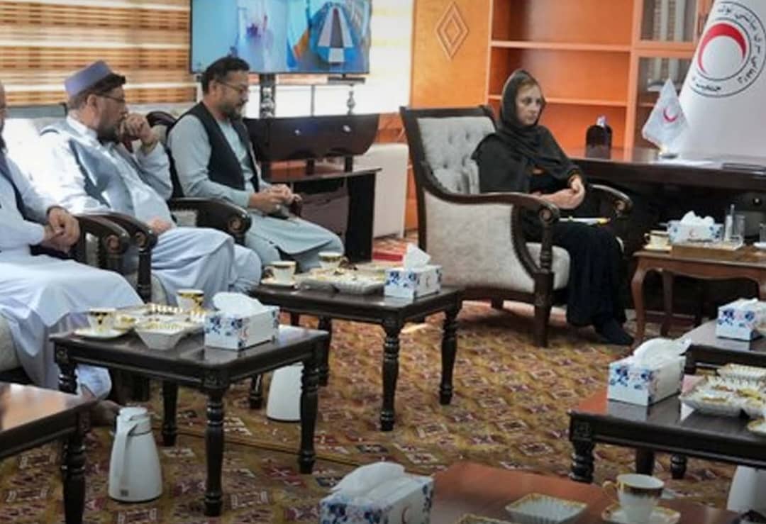 شهابالدین دلاور، رئیس عمومی هلال احمر گروه طالبان، با خانم نیوس، مسئول بخش روانی صلیب سرخ دنمارک، دیدار و درباره ارائه کمکهای انسانی به زلزلهزدگان استان کنر گفتوگو کرد.