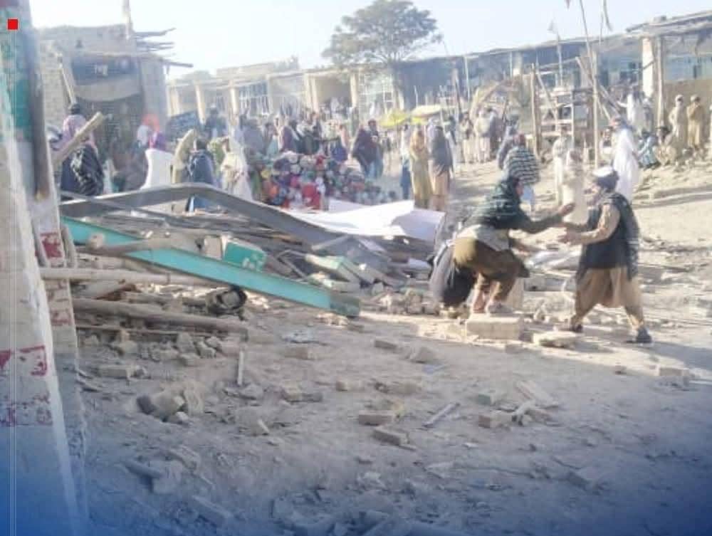 منابع گفته است که در این حمله تلفات جانی ثبت نشده، اما ده دکان ویران و چند مغازه دیگر آتش گرفته است. شاهدان میگویند گروه طاـلبان پس از بمباران محل را محاصره کردهاند.