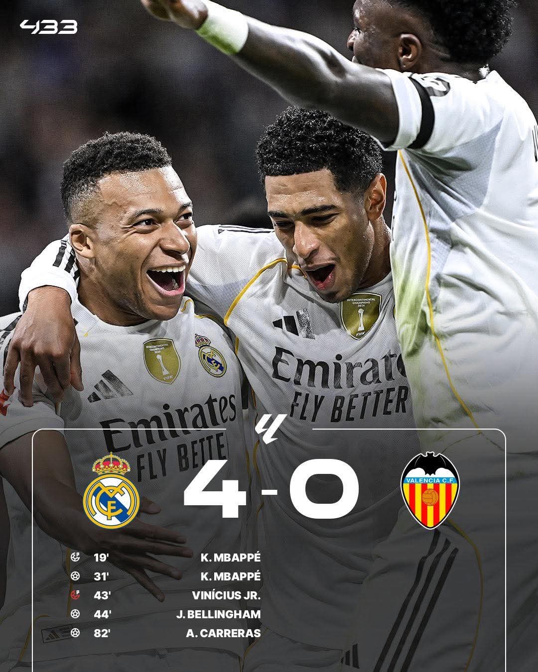 در هفته یازدهم رقابتهای لالیگا، تیم فوتبال رئال مادرید موفق شد والنسیا را با نتیجه ۴ بر صفر شکست دهد.