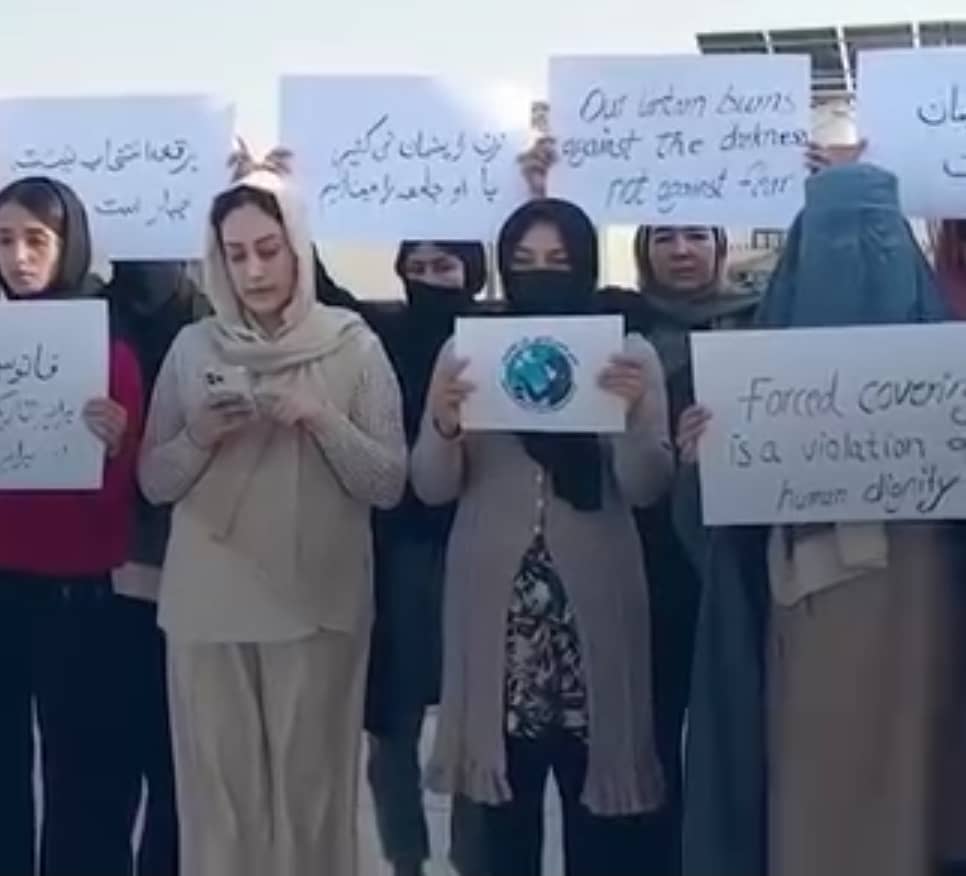 شرکتکنندگان در این تجمع که در پاسخ به تشدید محدودیتها در برابر زنان برگزار شد، این اقدام گروه طالبان را «نقض فاحش کرامت انسانی و آزادیهای اساسی فردی» خواندند.