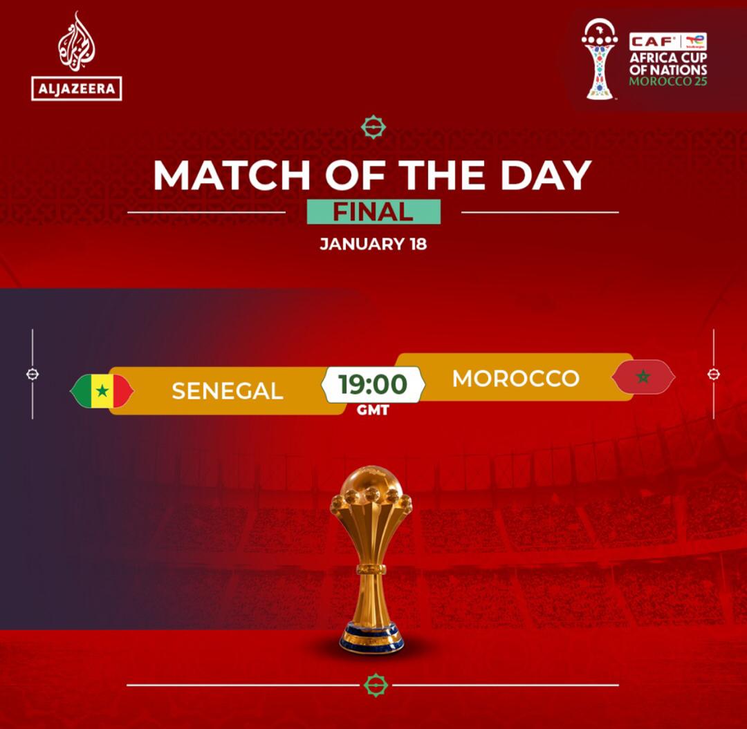 دو تیم فوتبال مراکش و سنگال در چارچوب جام ملتهای آفریقا امشب قرار است در فینال این رقابتها و کسب عنوان قهرمانی، به مصاف یکدیگر بروند.