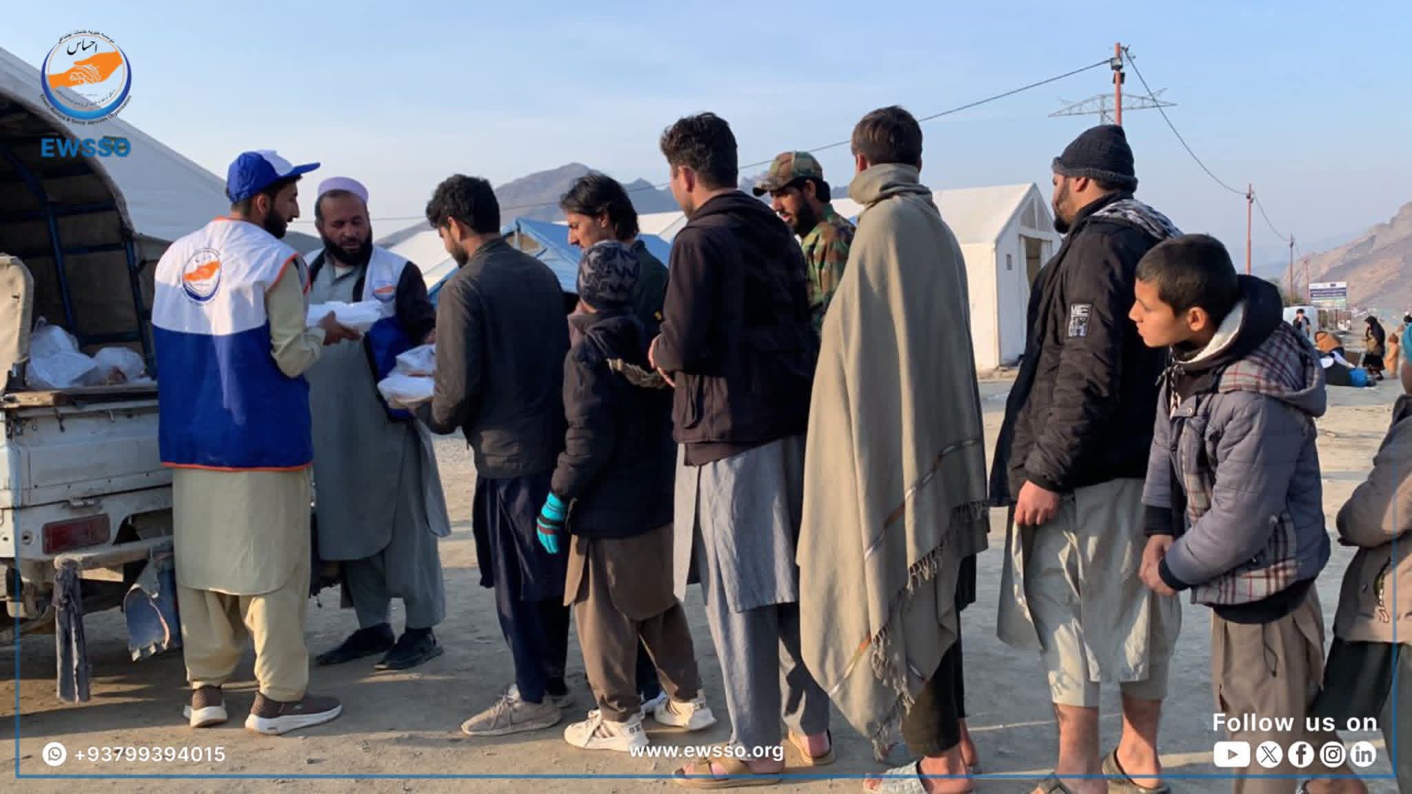 نهاد خیریه احساس، در ولایت ننگرهار، در شرق خراسانافغانستان برای برگشتکنندهگان مهاجر از کشور پاکستان، در تورخم غذای گرم توزیع میکند.