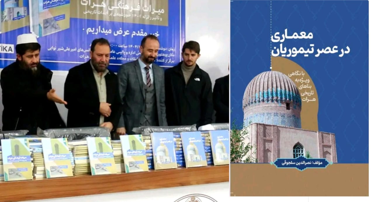این دو کتاب؛ «معماری در عصر تیموریان» نوشته نصرالدین سلجوقی و «میراث فرهنگی هرات و تأثیر زلزله ۱۴۰۲ خورشیدی بر آبدههای تاریخی» اثر حمیدالله امیری (غوریانی) و محمد مسلم مروی است.