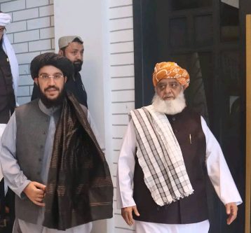 مولانا فضلالرحمن، رهبر حزب جمعیت علمای اسلام و عضو مجلس ملی پاکستان، با حضور در سفارت گروه طالبان در اسلامآباد، با خانوادههای قربانیان زلزله اخیر