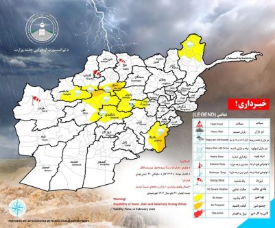 پاییز احمدی اداره هواشناسی گروه طالبان امروز، ۲۱ دلو/بهمن، از بارش برف و باران همراه با وزش باد شدید در بیش از ده استان کشور