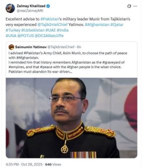 خلیلزاد با بازنشر مطلب جعلی درباره پاکستان با واکنش کاربران روبهرو شد