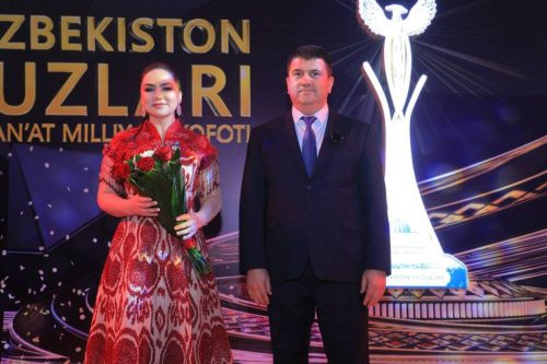 آرزو پرنیان نگینه امانقلوا، خواننده محبوب تاجیکستان، در مراسم ویژهای که به مناسبت اعطای جوایز ملی برگزار شد، نشان ستایشگر فرهنگ و هنر وزارت فرهنگ