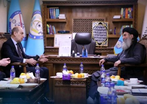محمد نوید دانشپور عبدالرحمن منیر، معین وزارت داخله گروه طالبان در امور مبارزه با مواد مخدر، با دمیتری ژیرنوف، سفیر روسیه و هیئت همراه او
