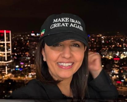 کلاهی با شعار «ایران را دوباره با شکوه کنیم» بر سر وزیر اسراییلی